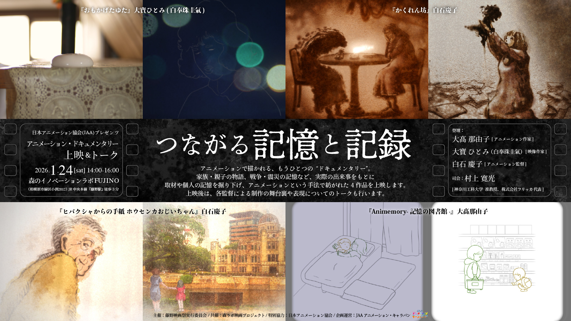 村上寛光さんと白石慶子さんが、アニメーション・ドキュメンタリー上映&トーク「つながる記憶と記録」に登壇されます! -
