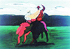 疾駆する馬上の2人。そのリズムに合わせて動く別の動画と交互に2人は消えてはまた現れる。